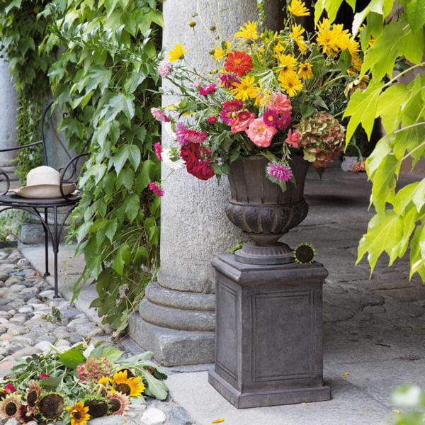 En métal gris patiné, cet ensemble constitué d'une colonne et d'une vasque sublimera vos plantations et autres bouquets grâce à son design rétro et élégant. Empreinte de romantisme, elle habillera n'importe quel jardin, terrasse ou balcon.