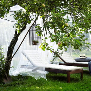 Cette moustiquaire filtrera légèrement les rayons du soleil tout en empêchant les insectes de vous déranger. De plus, l'effet vaporeux et aérien qu'elle diffuse fera son effet sur vos invités.