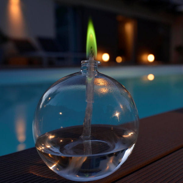 Créer un coin poétique dans le jardin, au bord de la piscine ou sur la terrasse tout en respectant l'environnement ? C'est possible avec ce nouveau combustible qui ne dégage ni odeur ni fumée et qui est sans danger puisqu'il est ininflammable. Et en plus, il surprendra vos invités avec la délicate flamme verte qu'il fait jaillir. Torche de jardin, lanterne, photophore à huile, lampe tempête, découvrez le reste de notre sélection pour savoir quel support allumer avec it's green.