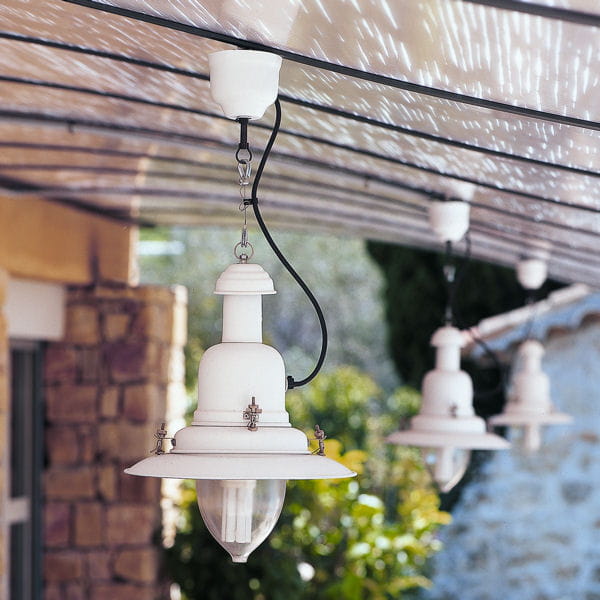 Cette très coquette suspension au délicat charme vintage donnera du cachet à votre veranda, à votre terrasse ou à votre auvent. Elle existe en trois très beaux coloris : blanc, vert et gris anthracite.
