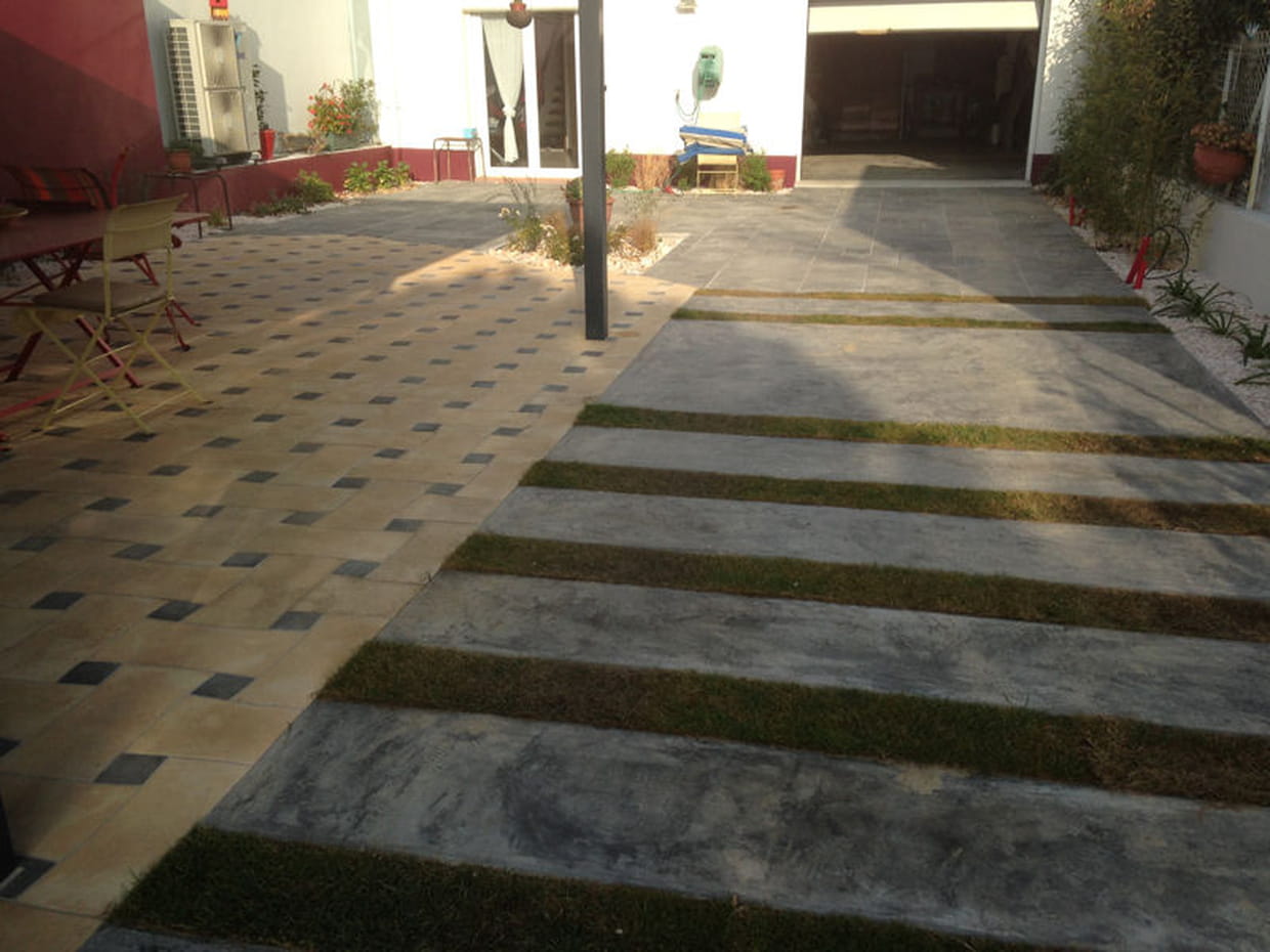Les propriétaires de cette maison aux murs de crépi blanc avaient en tête une terrasse leur permettant de profiter d'un barbecue mais également de la chaleur estivale tout en conservant l'accès à leur garage. Le concepteur-paysagiste Stéphane Archimbaud (Arcambal paysage) a relevé le défi et a transformé cette avancée non délimitée en une charmante terrasse.