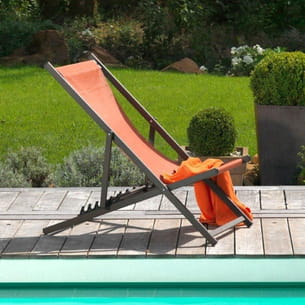 Cette chilienne est sans conteste un atout déco dans le jardin. L'aluminium de la structure et la toile orange fluo offrent un formidable contraste.