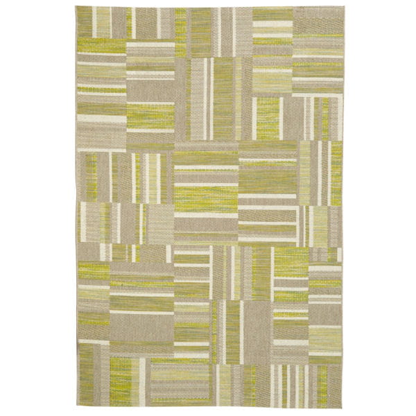 Mettez un peu de douceur et de confort dans votre jardin avec ce tapis en polypropylène à motifs vert clair et beige. Son esthétisme et ses couleurs lui permettent d'être également facilement intégré dans une chambre ou un salon.