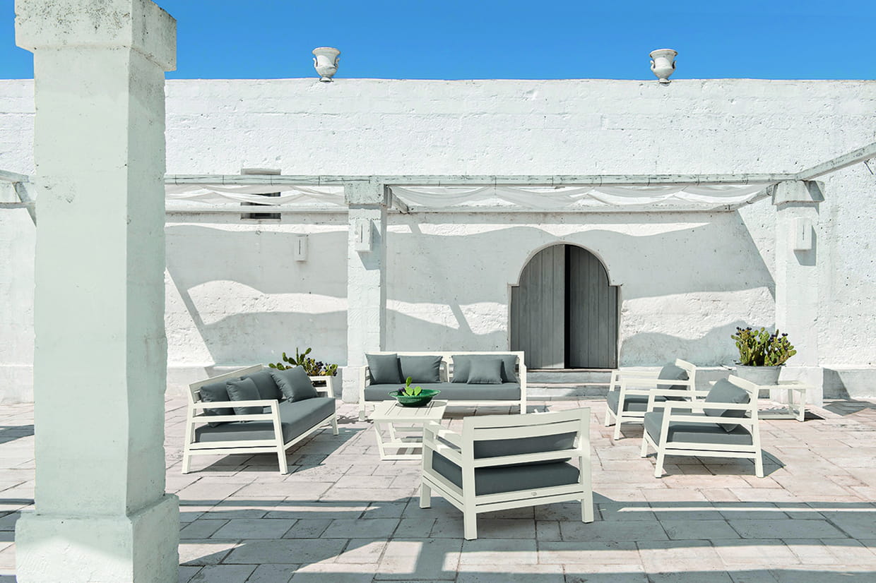 Salon Costes, finition en teck décapé - Prix : sur demande - Site :  www.ethimo.fr