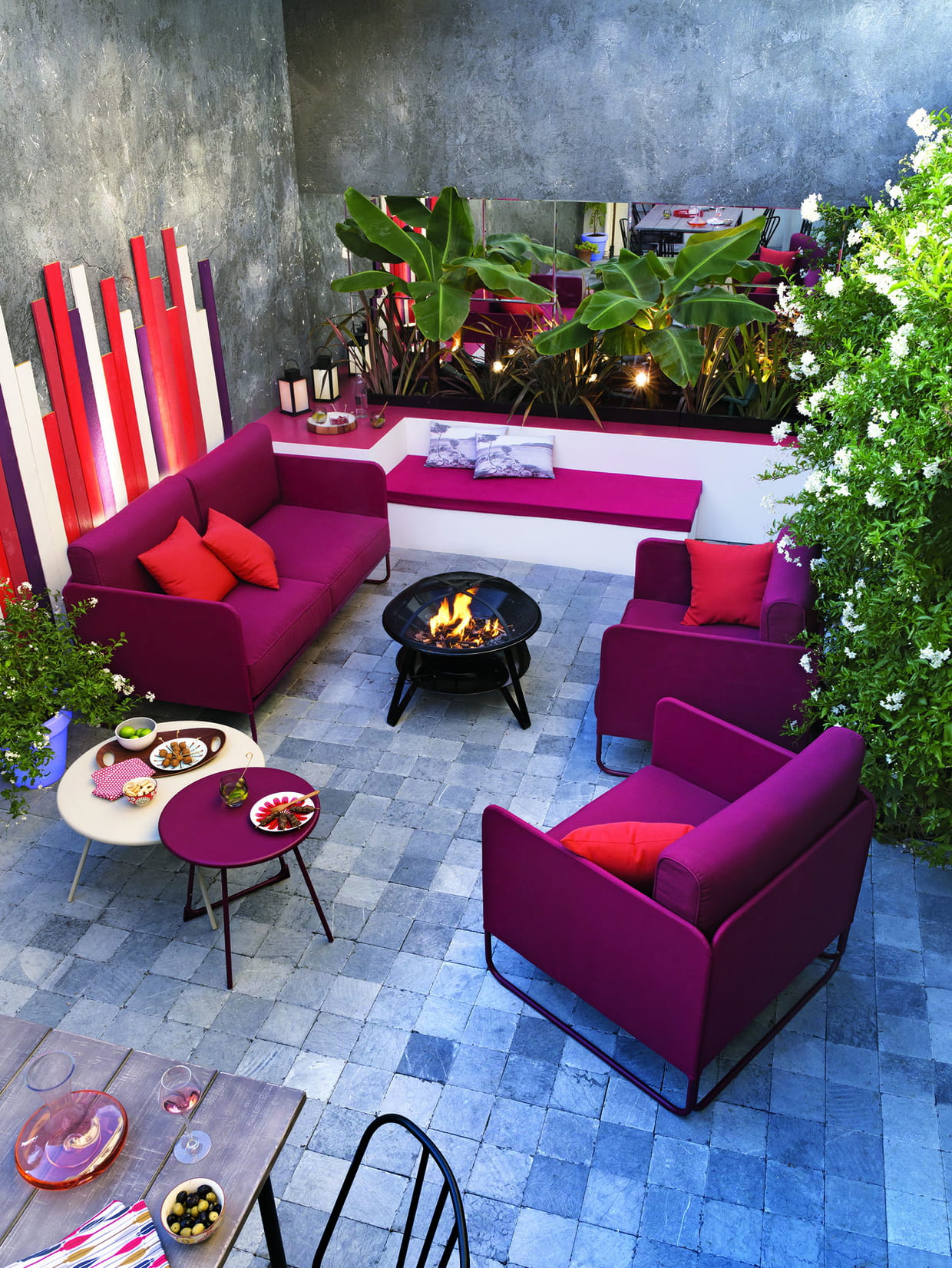 Salon en acier et toile avec deux fauteuils et un sofa - Prix : 649 euros - Site : www.castorama.fr