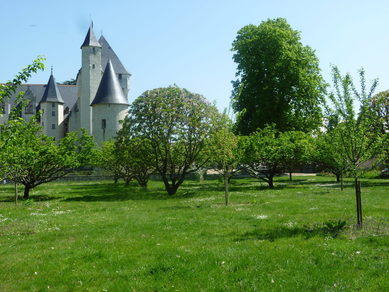 L'organisation du verger reprend le thème médiéval des quatre éléments : l'eau, la terre, l'air, le feu. Il n'y a donc ici ques des pommiers, pruniers, cerisiers et néfliers.