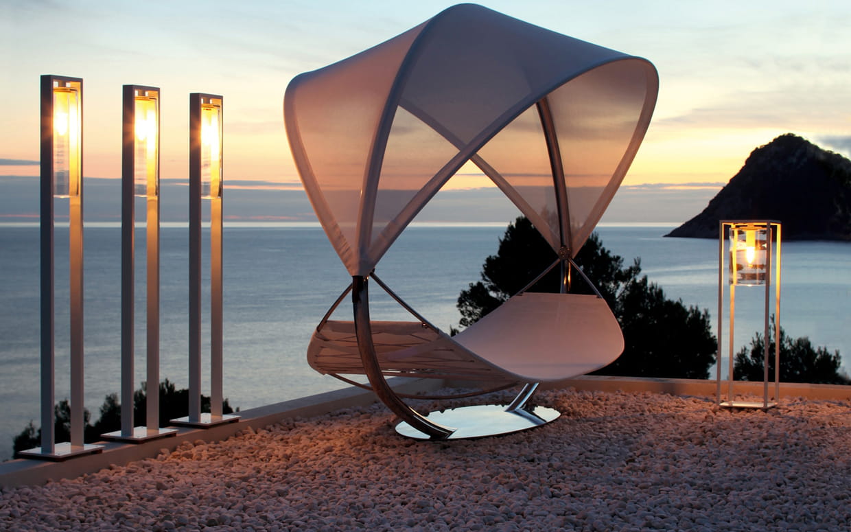 Aussi à l'aise au bord de la piscine que sur un terrasse, le lampadaire Dome Floor séduit par sa silhouette élancée. Lampadaire Dome Floor : prix sur demande, chez Royal Botania.