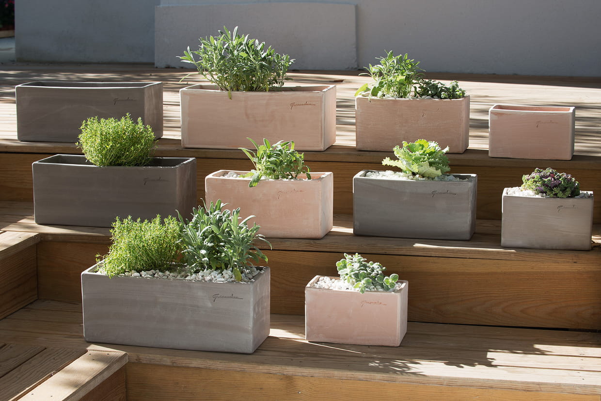 Ces pots de fleurs carré sont composés de terre cuite. Ils apportent une touche graphique aux balcons et terrasses, tout en mêlant subtilement sobriété et délicatesse. Prix : à partir de 32 euros le pot carré gris ou rose poudré Site : www.poterie-goicoechea.com