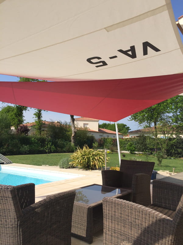 Alternative au parasol et au store-banne, le voile d'ombrage a trouvé sa place dans les jardins. Ce modèle fabriqué en France, en Loire-Atlantique précisément, imite à la perfection les voiles de bateau.