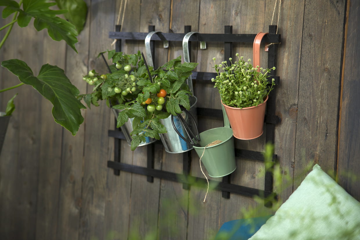 Pot de fleur pour balcon et clôture en bois. Prix ; de 1,59 à 1,98 euros le pot et à partir de 2,78 euros la clotûre.