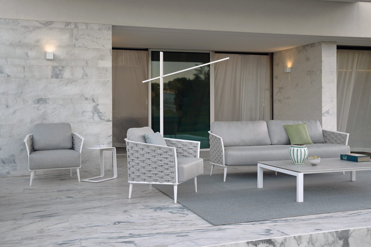 Tapis Steps de Manutti, en polypropylène, polyester et viscose. Modèle traité anti-UV, disponible en couleur Aqua et Silver. Dimensions de 260 x 400 cm. Prix ; 1 645 euros. Où l'acheter ? www.manutti.com