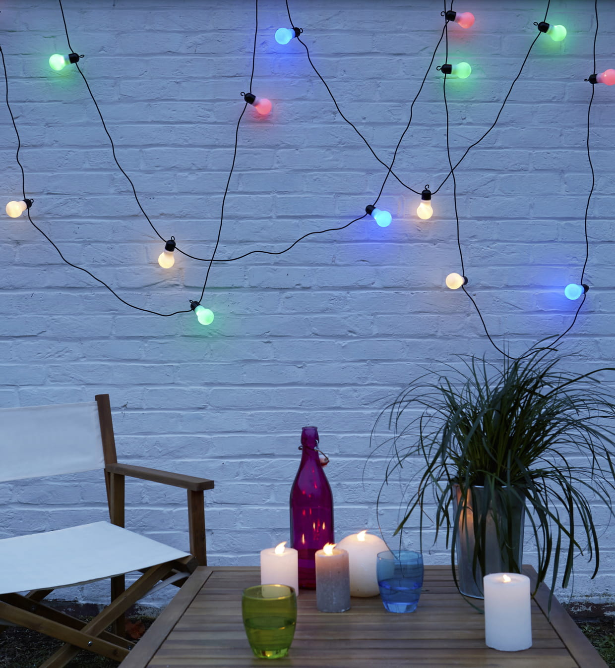 Guirlande électrique d'extérieur Festival d'Alinéa avec 15 ampoules de divers coloris. Prix : 49,99 euros la guirlande. Où l'acheter ? www.alinéa.fr