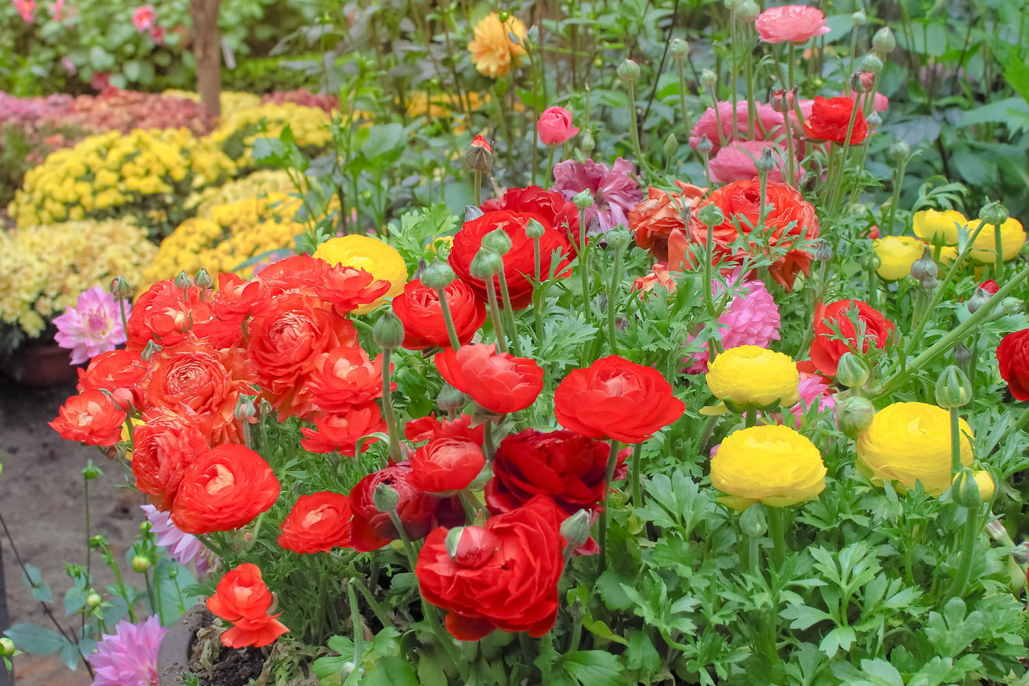 La renoncule séduit par ses fleurs aux nombreux pétales, fins comme du papier de soie, et par ses couleurs éclatantes, du jaune lumineux au rouge profond. Très appréciée des jardiniers, elle apporte une touche élégante au jardin comme aux bouquets, avec une floraison généreuse du printemps jusqu'au début de l'été.