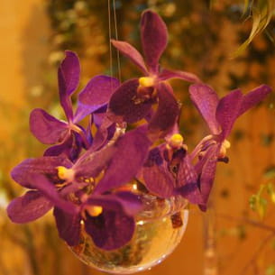 Présentée dans un vase rond suspendu, cette orchidée se fait élégante et design. Un petit côté aérien qui ne manque pas de charme.