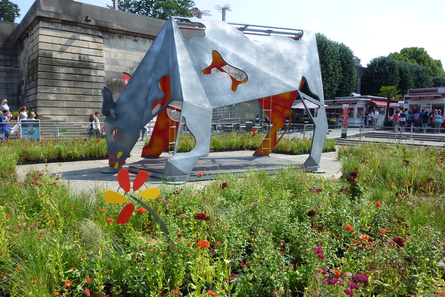 Marguerites, coquelicots, lavande… 30 000 plants répartis en 500 000 fleurs de 250 espèces végétales ont été nécessaires à la réalisation de ce jardin extraordinaire. Après les spectaculaires champs de blé et jardins qu’il a fait pousser sur les Champs-Elysées, à Paris et à Lyon, Gad Weil voulait créer une nouvelle oeuvre végétale. De son côté, la marque de laitages Yoplait cherchait une façon de célébrer ses 50 ans, en accord avec ses convictions environnementales. Ils se rencontrent par hasard et naît le projet Petite fleur en folies !
