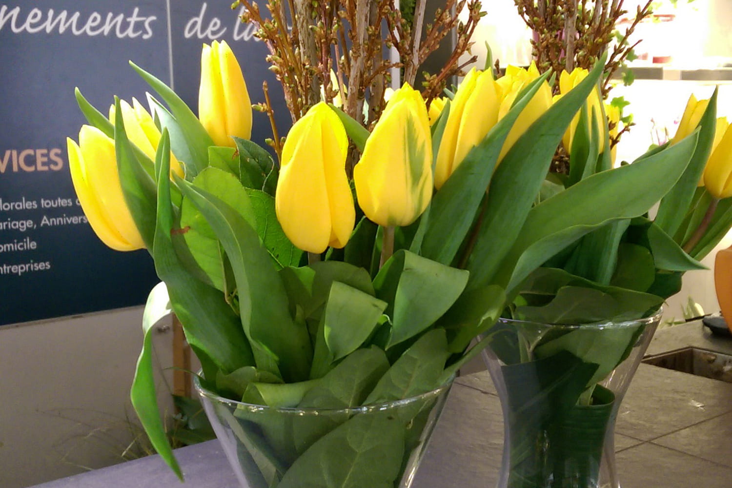 - D'une botte de tulipes jaunes (entre 10 et 12 fleurs)