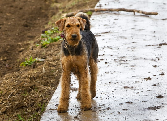 Aussi appelé Waterside Terrier et Bingley Terrier, l'Airedale est le plus grand des terriers. Il mesure en moyenne de 58 à 61 cm pour les mâles et de 56 à 59 cm pour les femelles. Il peut peser près de 20 kg. Son poil est dur, dense et dru. Sa robe est noire ou grise sur la surface supérieure du cou à la queue alors que les autres parties de son corps sont couleur feu. Ses oreilles peuvent être plus foncées et des nuances peuvent apparaître au niveau du cou et sur les côtés du crâne. Quelques poils blancs entre les pattes antérieures peuvent être admis.