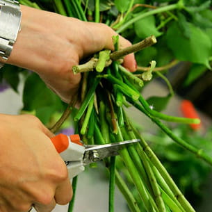 Couper le bouquet en le disposant à l'horizontale. © Elsa Sidawy / L'Internaute Magazine
