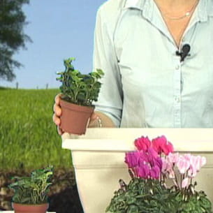 Pour le feuillage, il est par exemple possible d'opter pour du lierre commun, dit hedera helix, afin d'habiller la jardinière sur les côtés.