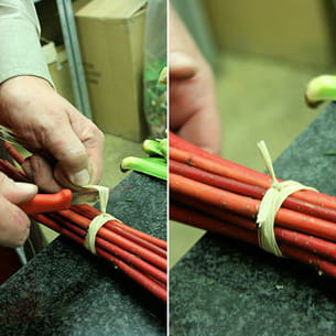 Commencez par attacher les branches de pommes du Japon à l'aide de raphia, en veillant à bien serrer.