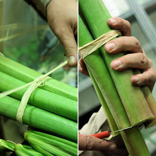 Procédez de la même façon avec les amaryllis. Disposez le bouquet à la verticale, en vous servant d'une table assez haute comme support.