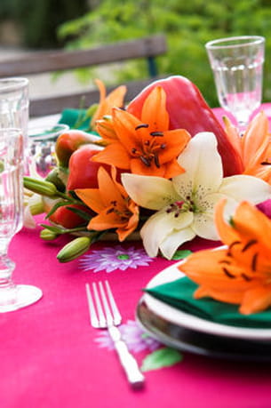Un centre de table "poivrons et lys". © Centre d'Information des Bulbes à Fleurs