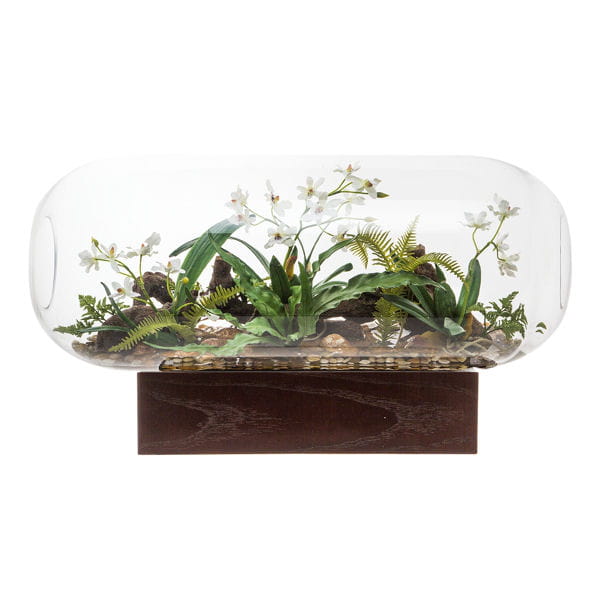 De forme ovale et posé sur un socle, ce terrarium imaginé par Jean-Marc Gady pour les 50 ans de Sia, est une vraie bulle de verdure pour la maison. Et, comme de coutume, les végétaux artificiels en tissu de la marque imitent à la perfection la nature.