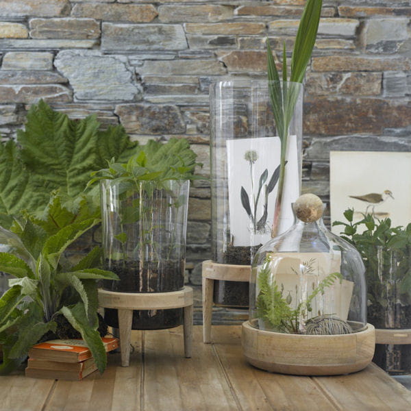 AM.PM. propose deux formes de terrariums très déco, sur support en bois naturel ou ciré. Pour un petit effet forêt vierge ou serre de botaniste, disposez plusieurs modèles de différentes tailles les uns à côté des autres.
