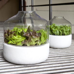Eh non, les salades ne poussent pas que dans le potager ! On peut les semer dans ces terrariums ultra design, pour des pousses de salade fraîche aux quotidien.