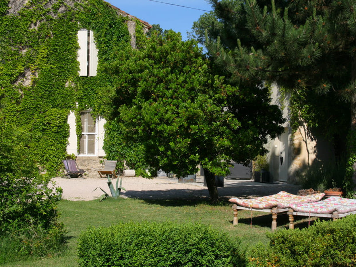 Dans cette maison du Vaucluse, la nature règne en maître. Les pins côtoient la vigne vierge avec harmonie créant un site d'une grande beauté et d'une grande quiétude. Ici, la vigne vierge s'est déployée librement sur la façade de la maison créant un joli contraste avec les volets blancs.