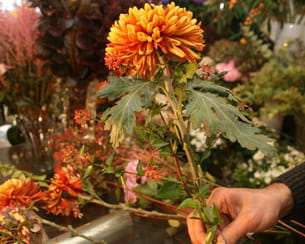 Choisir la première fleur, un chrysanthème par exemple.