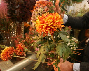 A chaque fleur ajoutée, tourner légèrement le bouquet, toujours dans le même sens. C'est ce qui donnera sa forme arrondie au bouquet.
