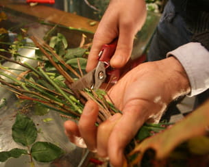 Selon la taille du vase choisi, couper les tiges et branches du bouquet avec le sécateur.