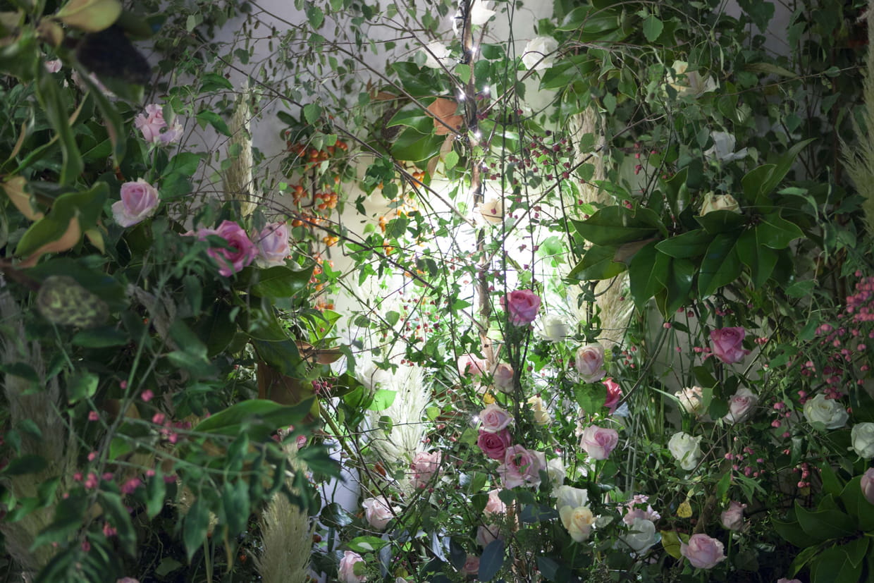 Le souhait de Monceau Fleurs était aussi de mettre en avant sa gammes de roses, à travers un camaïeu harmonieux de beige, rose pâle et de fuchsia.