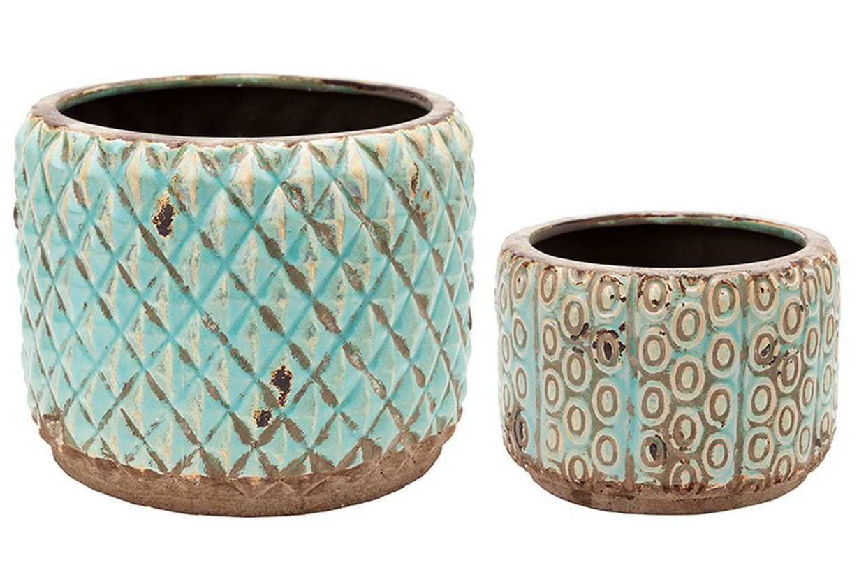 Lot de 2 cache-pots en grès turquoise, par Sia. Prix : 69 euros. Où les acheter ? www.sia-homefashion.fr