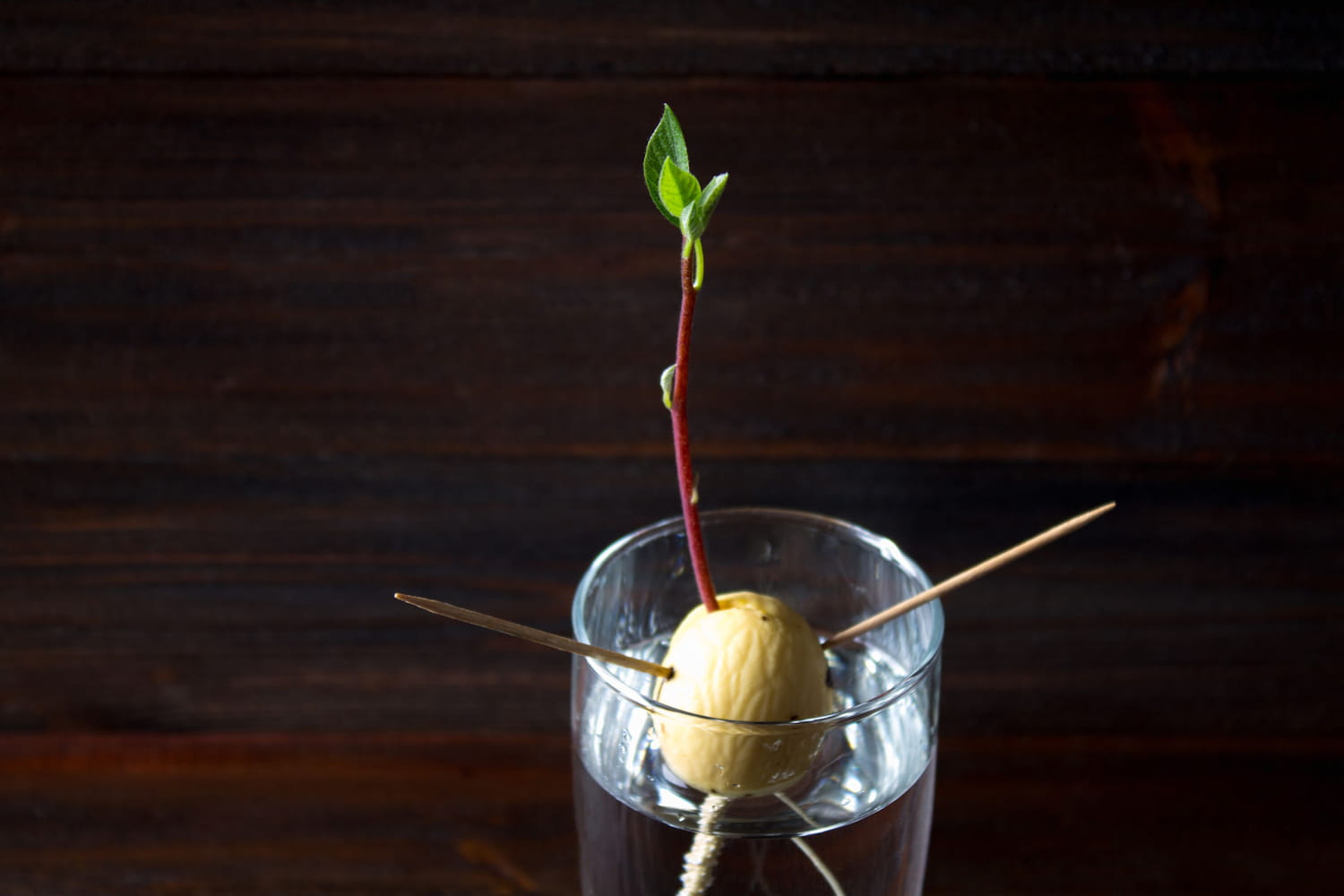 Plutôt que de jeter votre noyau d'avocat après votre déjeuner, transformez-le en plante ! Fendez le noyau dans le sens de la hauteur pour que les premières feuilles sortent au niveau de la pointe. Plantez des cure-dents ou des allumettes autour du noyau pour pouvoir le faire tenir en équilibre sur un verre. Remplissez le verre pour que la base soit immergée. Il ne vous reste plus qu'à attendre que des racines sortent du noyau pour pouvoir le planter.