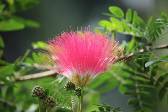 Quel plaisir de posséder dans son jardin des variétés étonnantes qui enchantent les sens en fonction des saisons. Les jardiniers à la recherche d'une plante surprenante pourront se tourner vers cette espèce d'arbuste à la floraison originale : en août et septembre, ce dernier se pare de drôles de pompons soyeux qui le rendent unique. En plus d'être un véritable plaisir pour les yeux, ses fleurs sont particulièrement appréciées des pollinisateurs. Quant à ses feuilles, elles se ferment au crépuscule pour se rouvrir le lendemain matin.