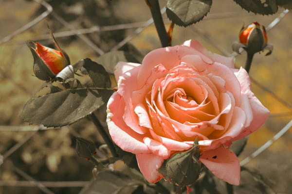Par ailleurs, il est important d'effectuer des coupes nettes, légèrement en biais, juste au-dessus d'un bourgeon orienté vers l'extérieur, pour éviter que les nouvelles branches ne poussent vers le centre. Une structure aérée limite l'humidité stagnante et donc les maladies. De plus, chaque année, il est conseillé de retirer quelques vieilles tiges à la base pour encourager le renouvellement, en plus du bois mort, malade ou qui se croise. Enfin, utiliser un sécateur propre et bien aiguisé réduit les blessures inutiles, et le désinfecter entre deux plantes évite de transmettre des maladies d'un rosier à l'autre.