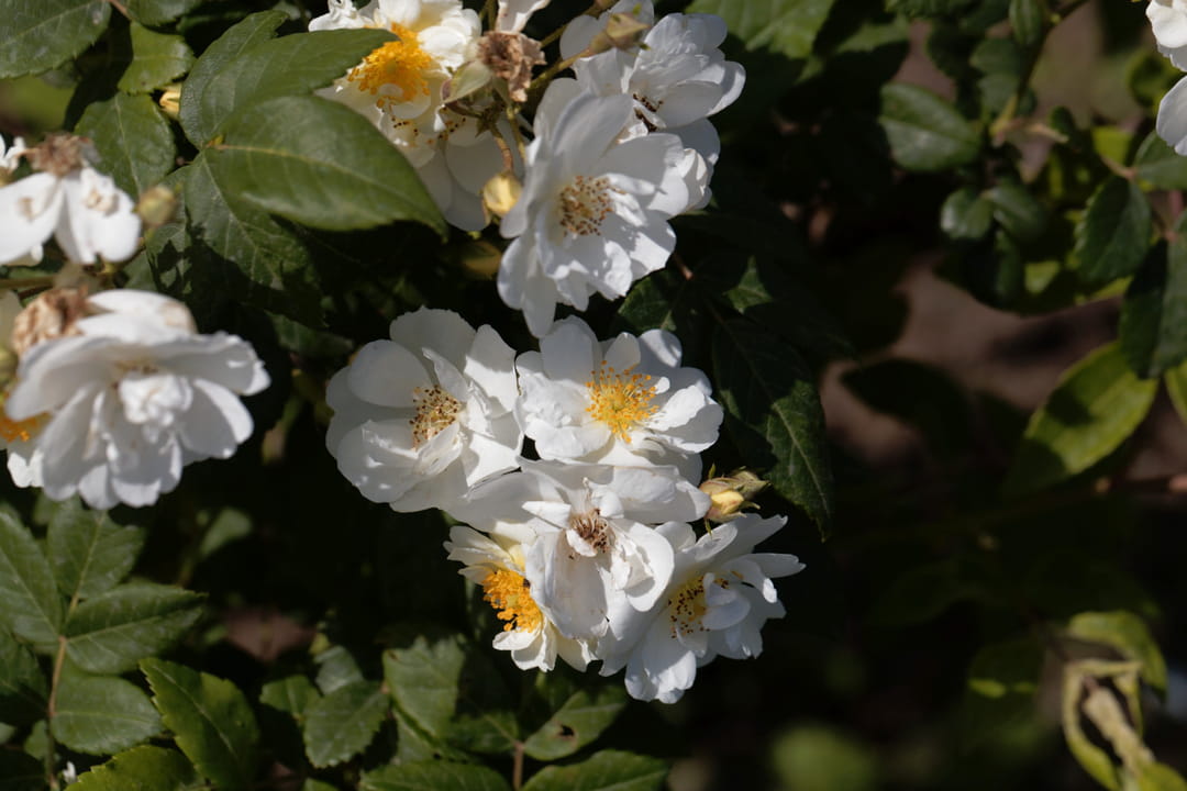 La floraison intervient généralement entre juillet et septembre, les fleurs apparaissent en grandes grappes semi-doubles, de couleur blanc crème, et diffusent un parfum musqué, à condition d'avoir taillé au bon moment. Cette abondance transforme rapidement une structure nue en véritable masse fleurie. Qui plus est, une fois la floraison terminée, la plante laisse apparaître des cynorrhodons rouges et ronds, qui persistent un moment avant la chute des feuilles en hiver. Bref, planté au mois de mars, c'est LE rosier qui peut transformer une pergola ou une clôture dès les premiers mois de l'été.