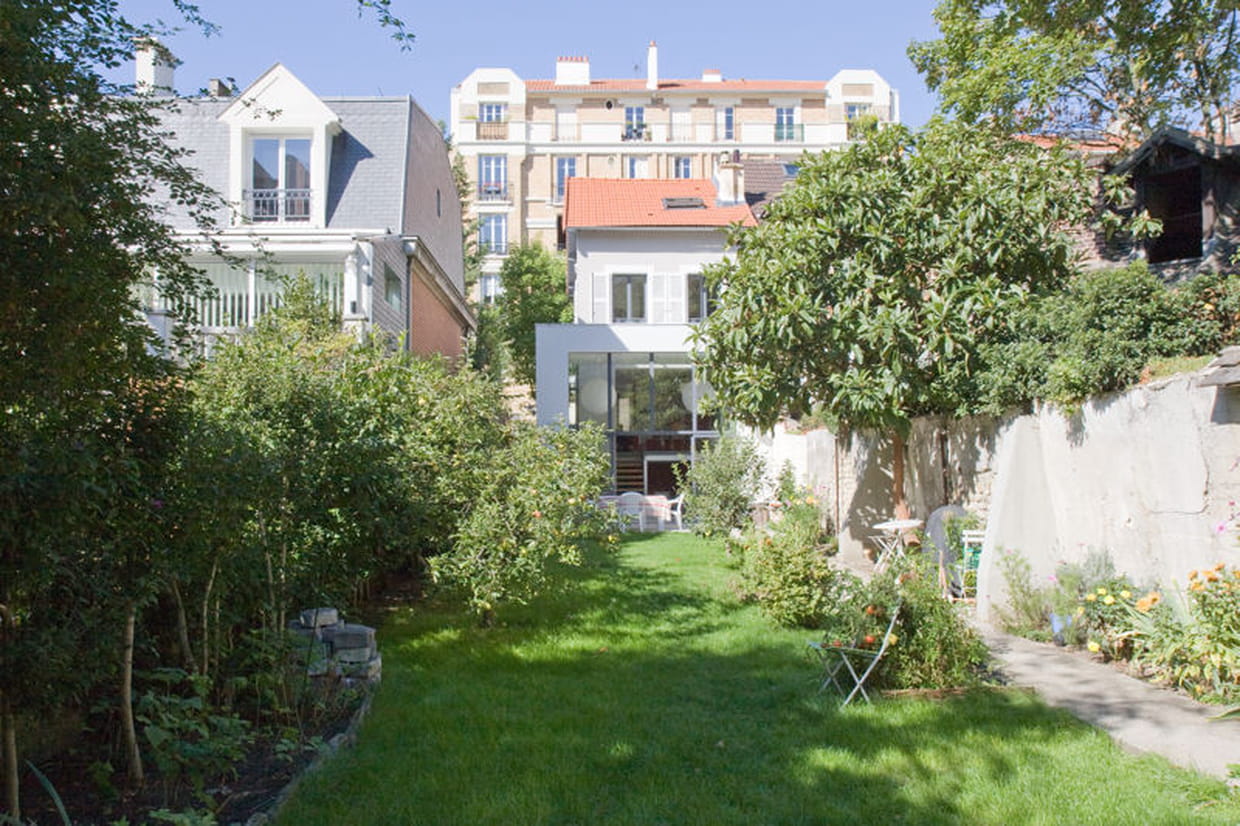 En région parisienne, cette maison de ville avec extension bénéficie d'un petit jardin tout en longueur et fort appréciable en zone citadine. Il y pousse des fleurs, des tomates et des arbres fruitiers. Voir le reportage