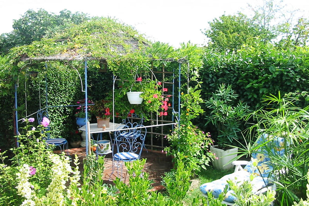 En Aquitaine, Gilbert a construit sa propre gloriette et l'a garni de géraniums, passiflores et pétunias pour un résultat tout à fait charmant !