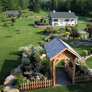 Loulou a misé sur la variété dans le choix des végétaux : hémérocalles, hydrangées, clématites, hostas, marguerites, phlox, coreopsis et échinacées ont été disposées en massifs et en parterre. A l'entrée, une passerelle associe harmonieusement le bois au végétal, et quelques pierres permettent d'astucieux jeux de niveau.