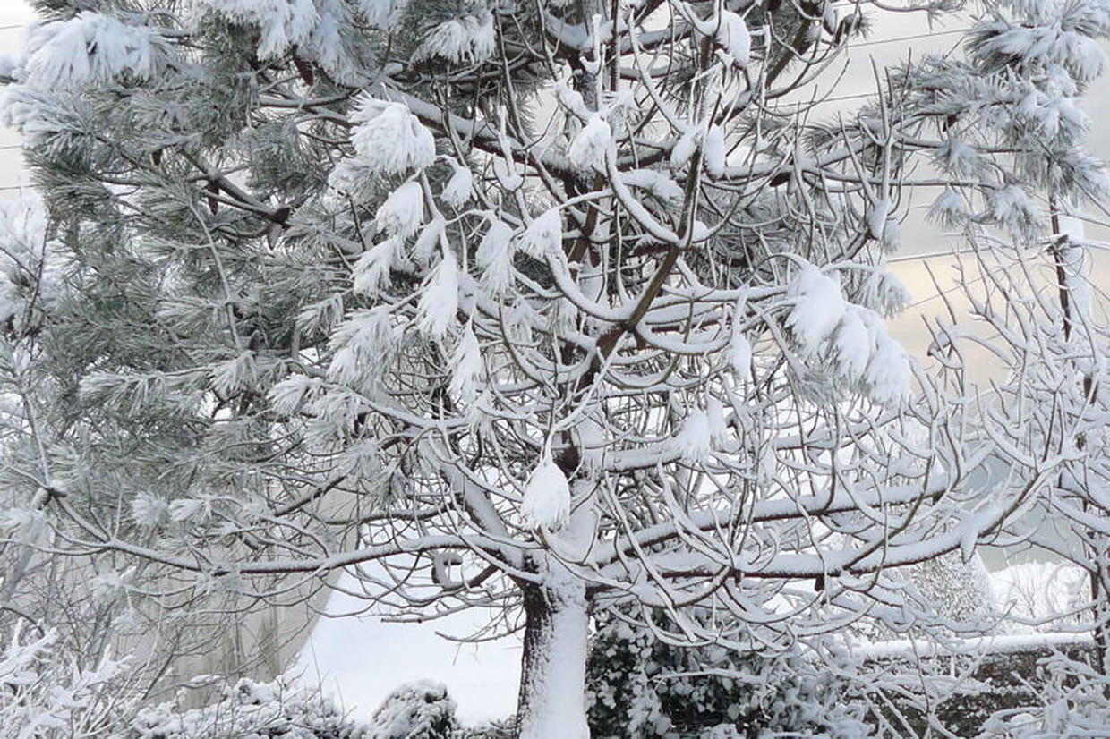 Sous quelques centimètres de neige, ce résineux prend des airs... emplumés.