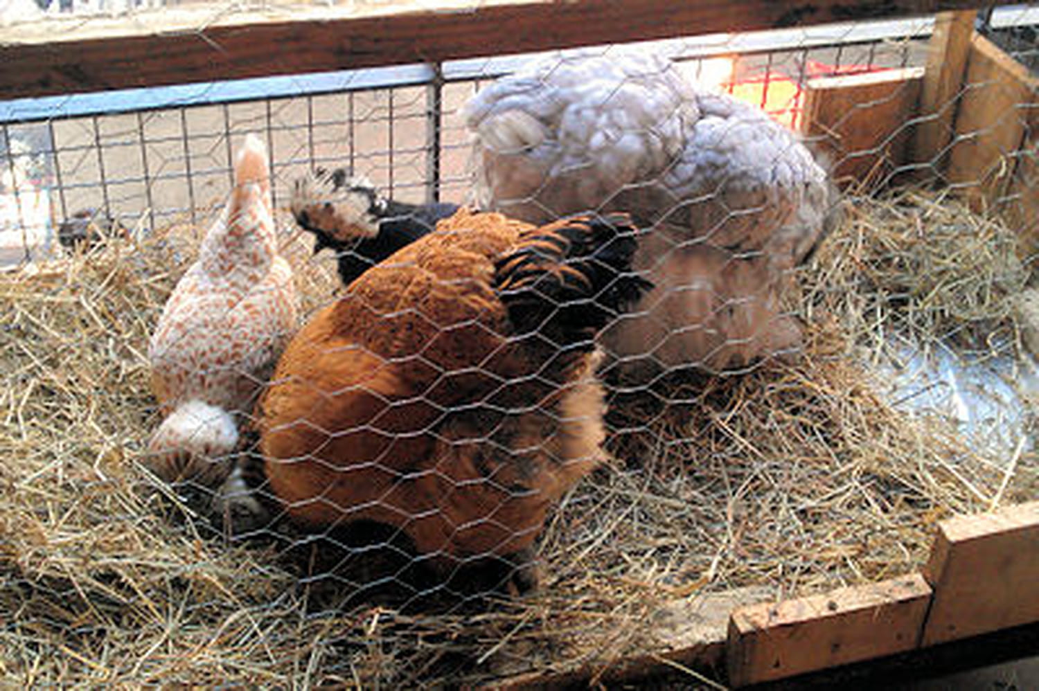Le poulailler doit absolument comporter une partie fermée et un perchoir. La poule se couche comme les... et se perche ! On y met de la paille, jamais de foin ou alors seulement là où elles pondent. En effet, le foin a tendance à s'agglutiner et à devenir humide.