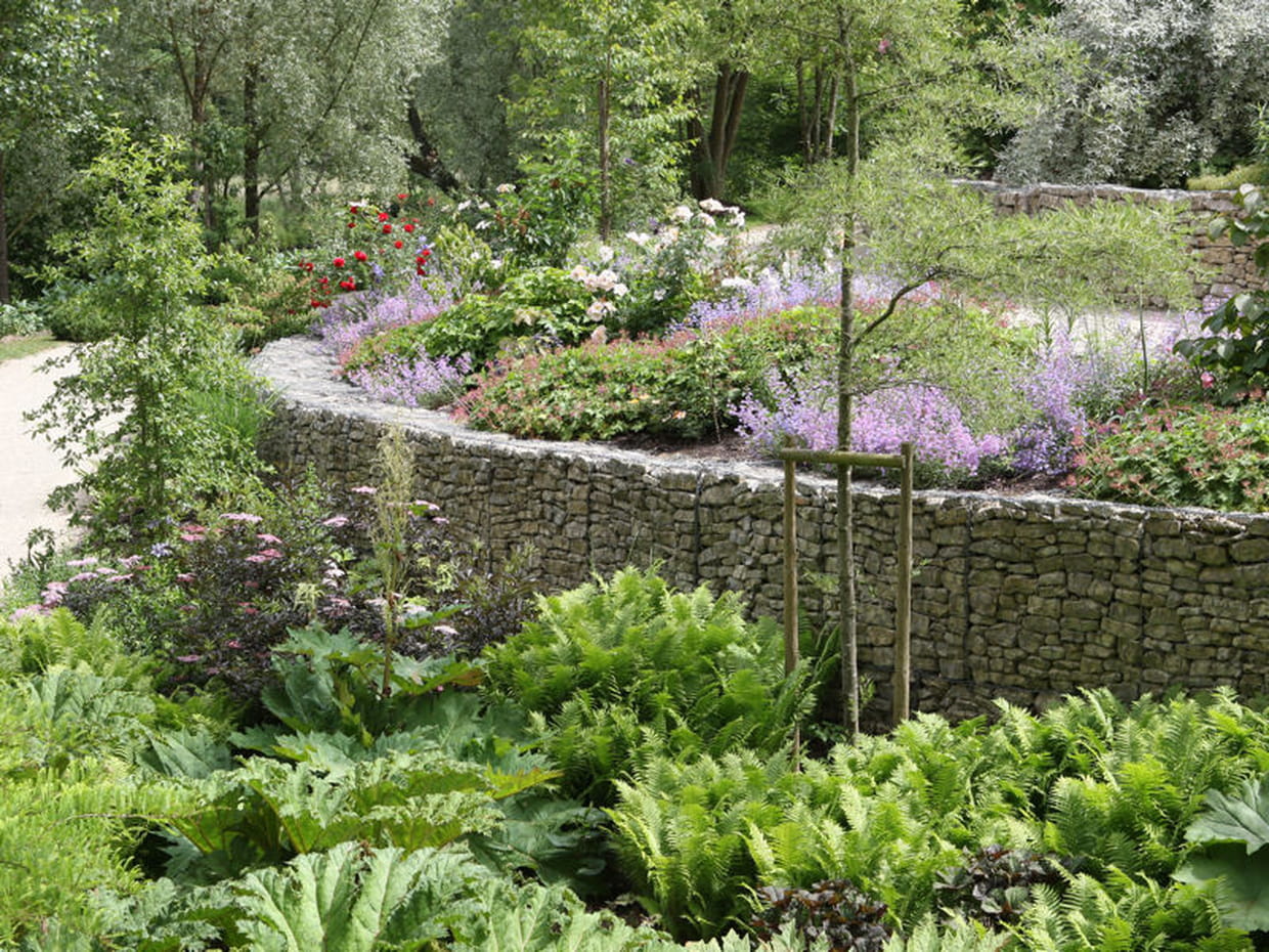 Le belvédère est contigu au jardin des grands feuillages. Il se déploie en spirale, structuré par des gabions qui épousent les formes naturelles du terrain. Les oliviers de bohème inermis et les clématites s'y déploient avec quiétude. Les rhododendrons Yakusimanum, quant à eux, structurent les talus du belvédère.