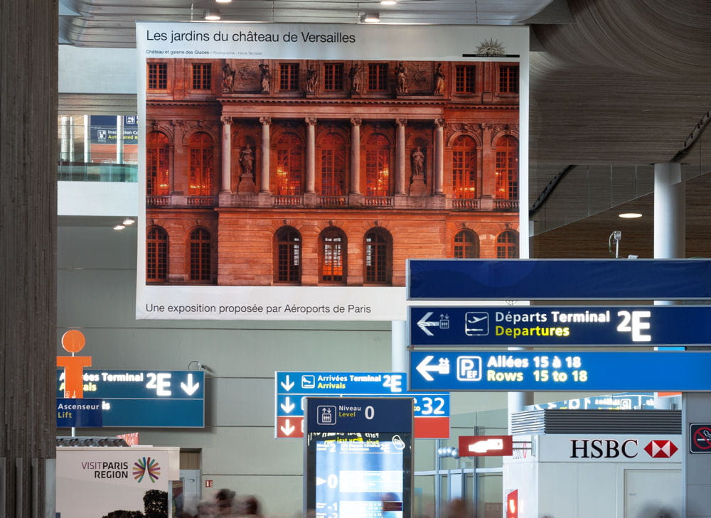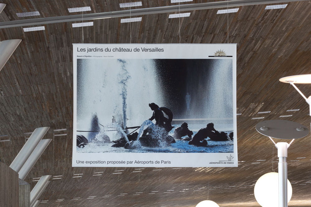 Jusqu'au 24 novembre, les aéroports parisien (Charles-de-Gaulle et Orly), en partenariat avec le château de Versailles, suspendent quelques parcelles photographiées de ses jardins dans leurs terminaux.