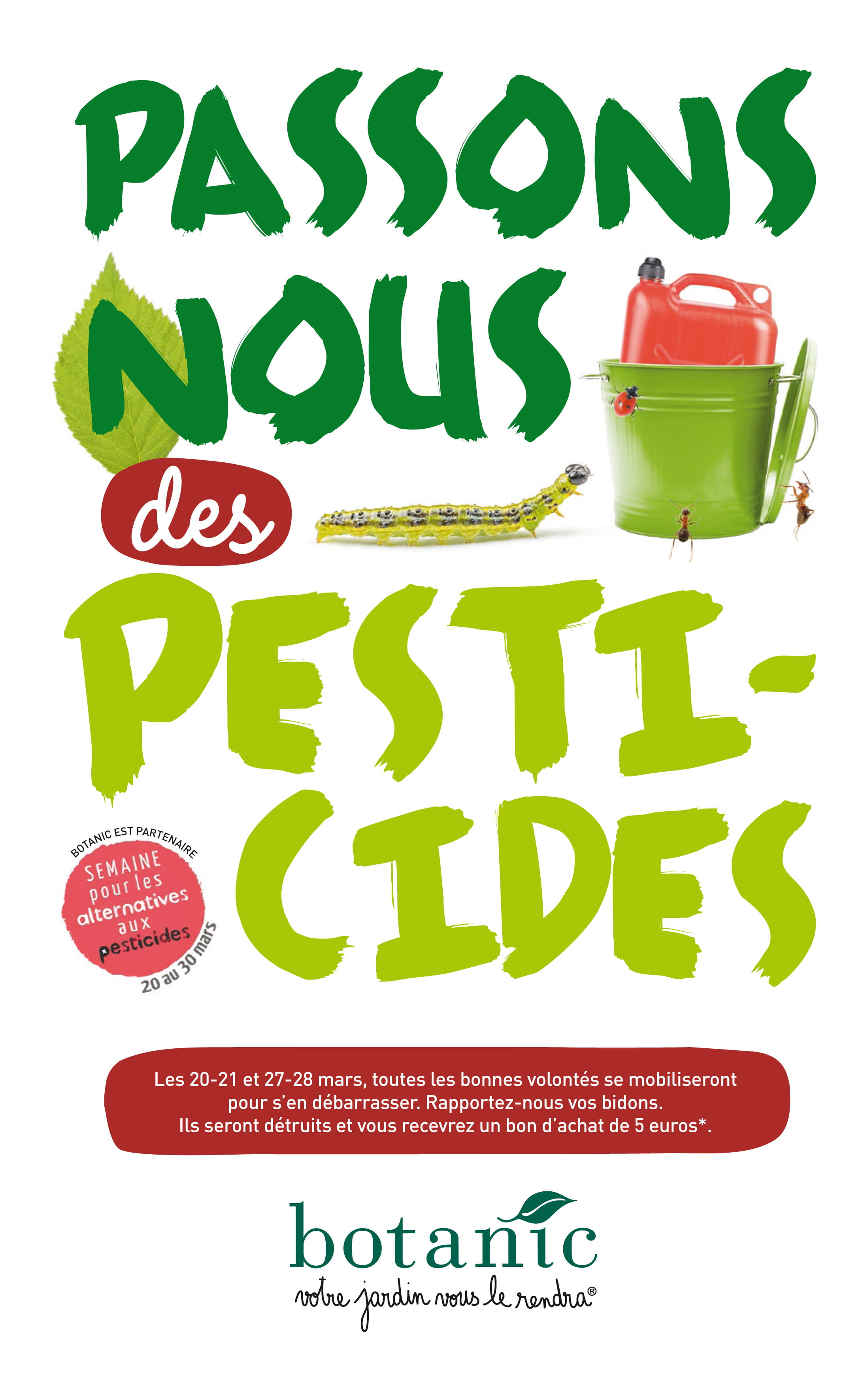 L'enseigne de jardinage Botanic annonce, pour ses 20 ans et pour la 10e édition de la Semaine pour les alternatives au pesticides, la poursuite de la collecte de pesticides "Pulvérisons les pesticides". L’événement rebaptisé "Passons-nous des pesticides" sera ainsi systématiquement proposé deux fois par an, au printemps puis à l’automne. Un vrai plus lorsque l’on sait que les déchetteries ne collectent pas systématiquement tous ces produits dangereux. En 2014, l’opération a d’abord permis de récolter 5 tonnes de pesticides dans les magasins Botanic, puis 4 autres tonnes lors de son renouvellement à l’automne suivant. Une belle action citoyenne qui a mobilisé plus de 2 700 personnes sur les deux saisons.