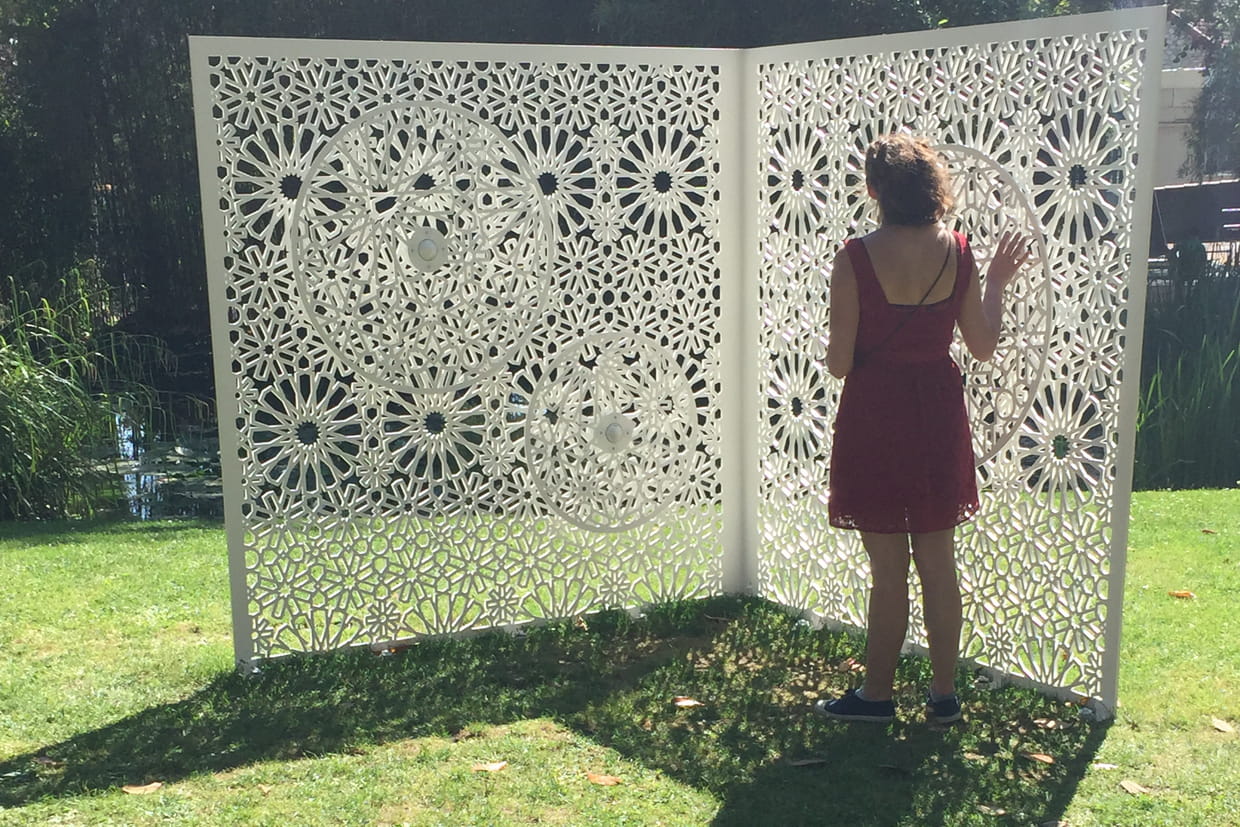 Les formes se répètent, se juxtaposent. L’activation de la machine force le jeu avec la lumière de soleil, changeante selon les moments de la journée.