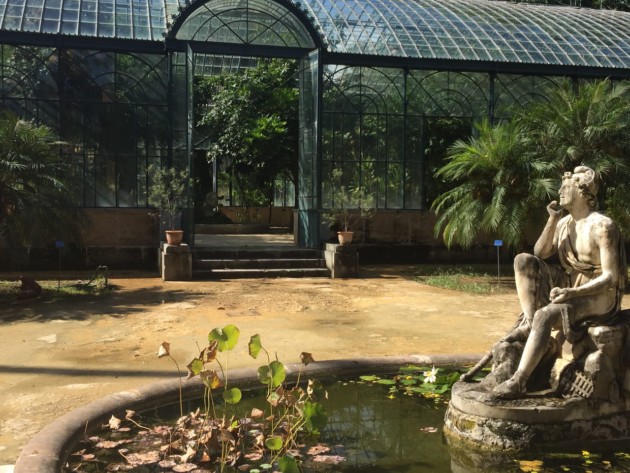 Devant l'entrée de la serre Marie Caroline, campe la sculpture du bain de Paride. Au début du XIXe siècle, cette serre a été érigée à la demande de la reine, qui lui a laissé son nom, pour qu'y soit créé un jardin d'hiver.