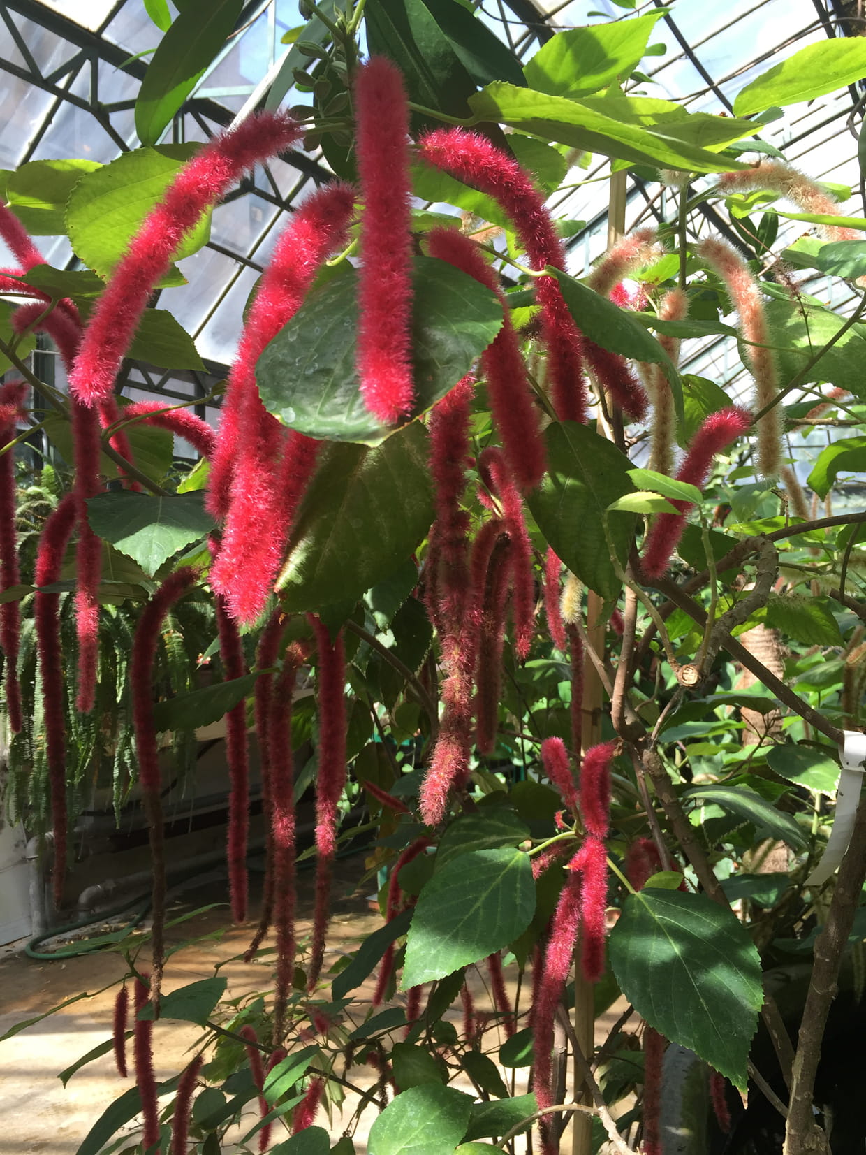 Les fleurs en épis de l'Amaranthus égayent cette serre verdoyante. Dans la famille des Amaranthacées, quelques espèces demeurent ornementales. Certaines, considérées comme plantes potagères, sont cultivées pour leurs feuilles ou leurs graines. Enfin, d'autres restent de "mauvaises herbes", qui prolifèrent surtout dans les champs.